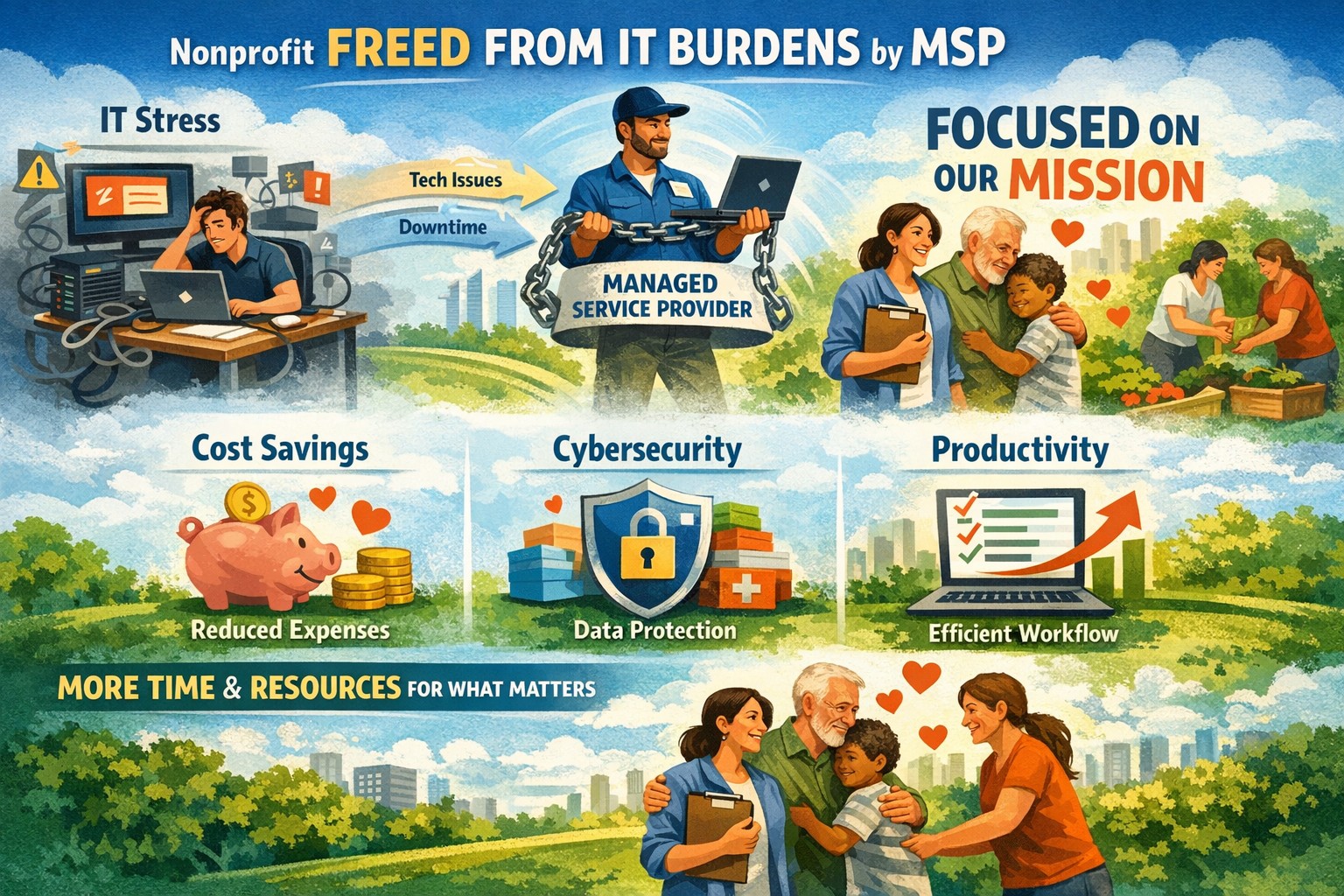 By removing the burden of IT management, your team can devote more time and energy to fundraising, program development, and community outreach-leaving the tech headaches to the experts.