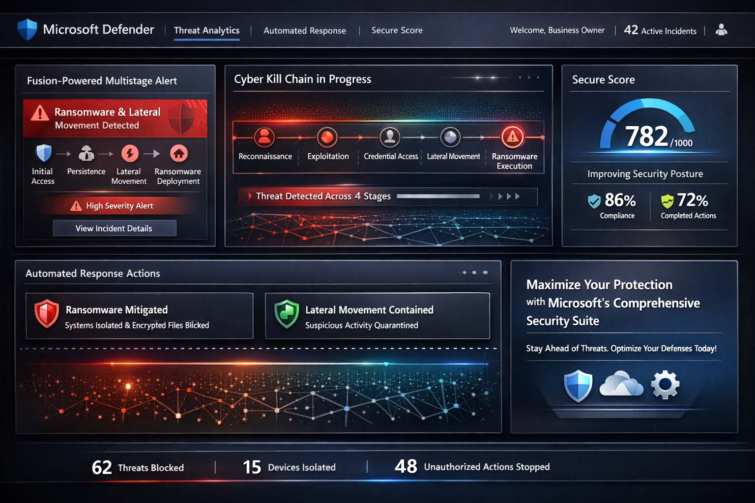 Cyber threats evolve rapidly, targeting businesses at every stage of the attack chain—from reconnaissance to exfiltration. Microsoft’s integrated security solutions, like Sentinel and Defender, empower business owners to detect and neutralize these threats proactively, safeguarding operations and revenue.