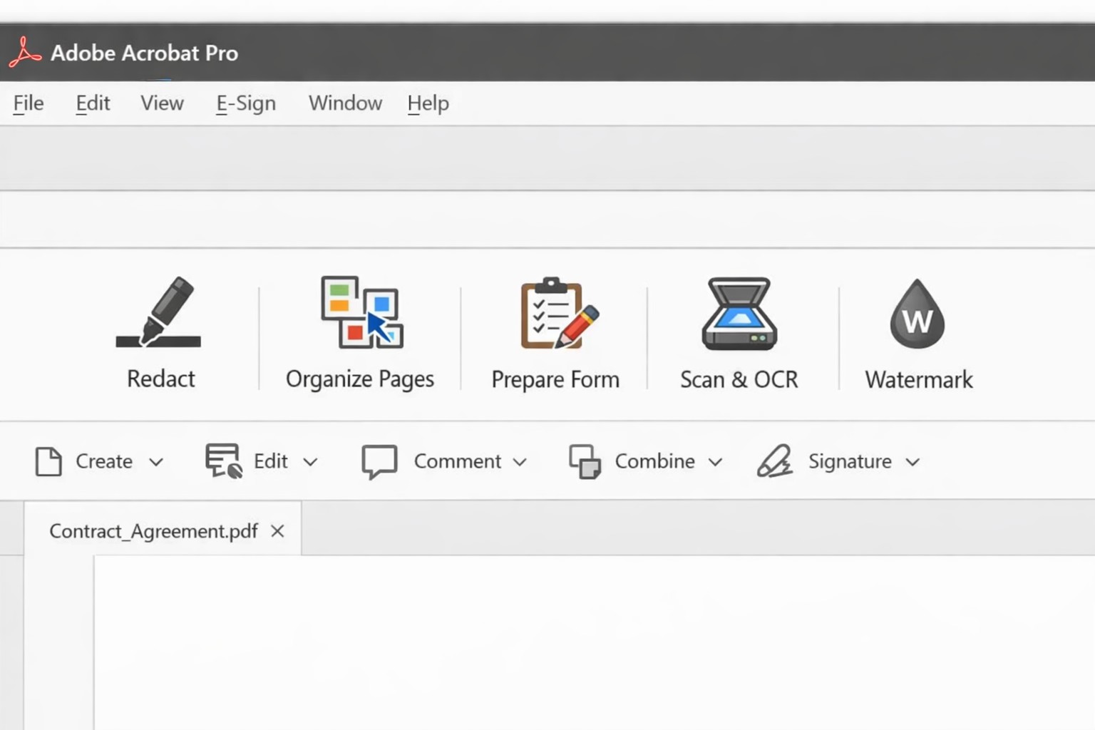 Acrobat Pro tools panel: redact combine edit OCR workflow actions.